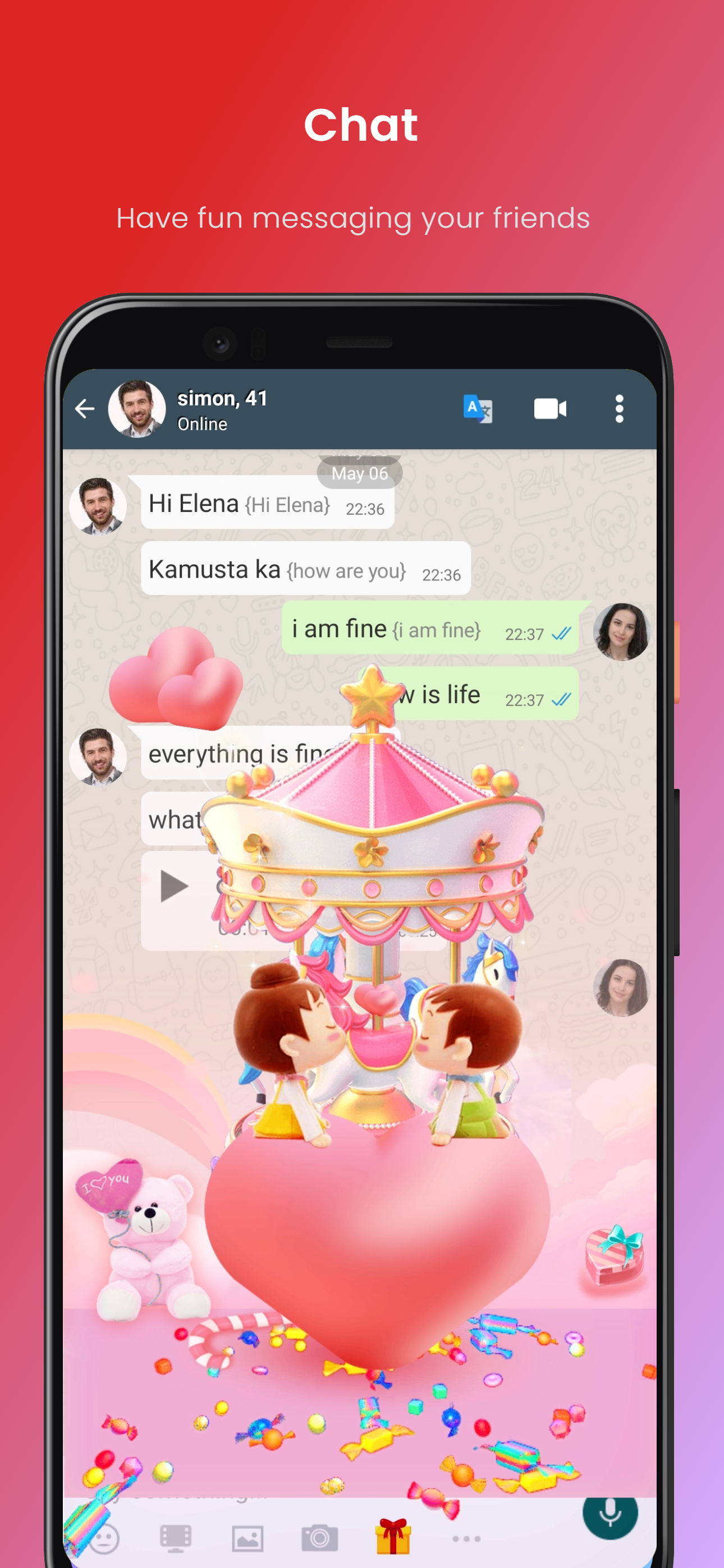 - Общение в чате — видео и голосовые сообщения, фото, анимация, смайлики